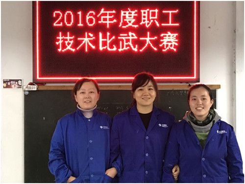 技术比武前三名获得者(由左至右:第三名:甘丽萍、第一名:沈君君、第二名:李洁)