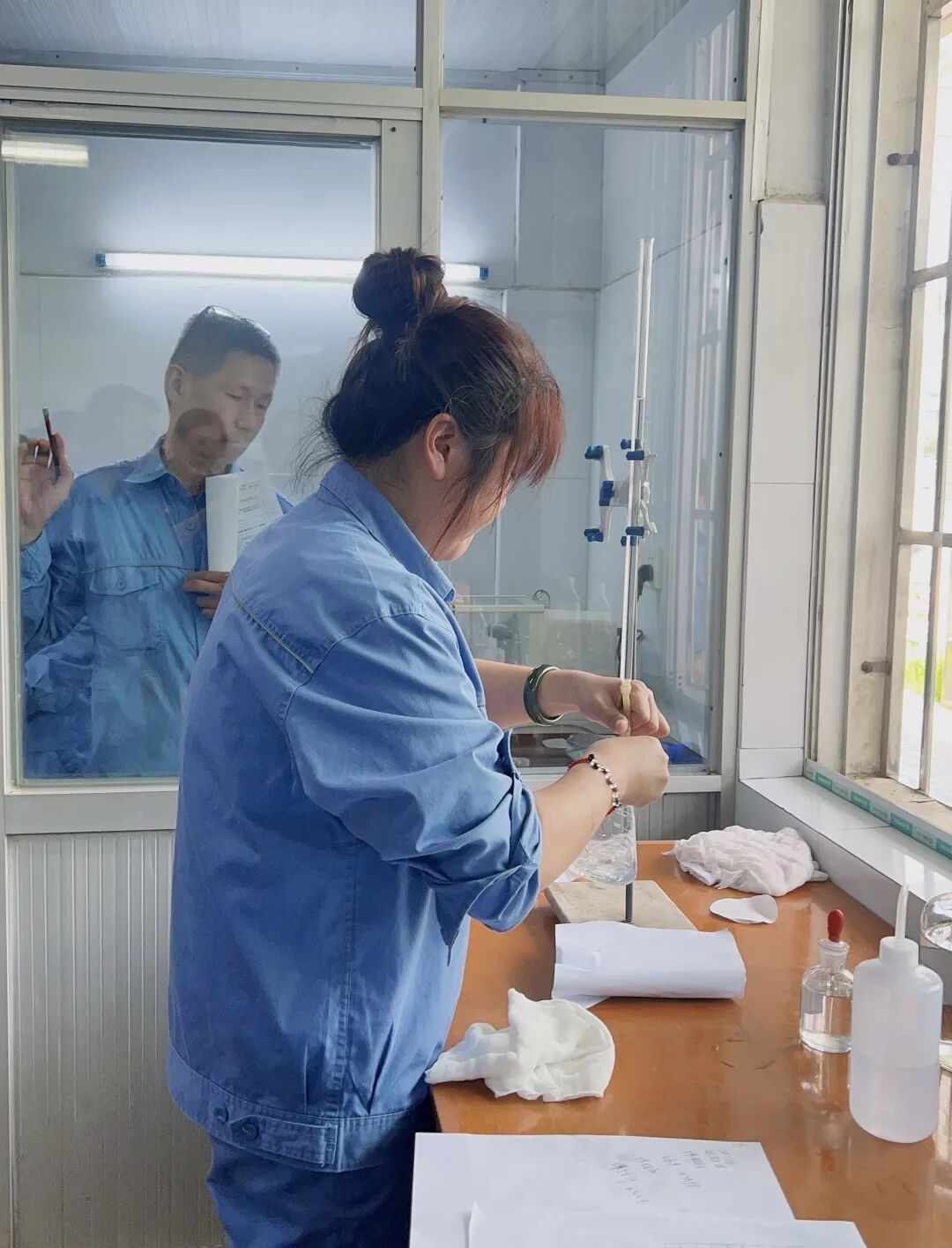 强技能 展风采 I 公司开展分析检验工技术比武发表时间:2023-07-28 15:51 强技能 展风采 公司开展分析检验工技术比武 ![]() 7月27日,根据2023年培训计划,结合长岭炼化第十八届“炼塔杯”分析检验工技术比武通知精神,公司组织开展了“分析检验工技术比武”活动,来自精细化工厂和中岭化工的11名参赛选手同台比武,展开精彩的技能角逐。 ![]() 公司高度重视本次技术比武,副总经理刘永莉、蔡赞、人力资源部及生产技术部相关人员出席活动现场。赛前,李金海代表评委组宣读比赛规则及裁判承诺,随后比赛正式开始。 ![]() ![]() ![]() 此次技术比武分为基础理论考试和实际操作两部分,全面考核化验员“五准三及时”的工作基本要求。其中基础理论考试占比50%,实际操作竞赛占比50%。基础理论考试采取笔试闭卷形式,主要考核化验员的基本理论水平。实际操作采取裁判评分的形式,主要考核化验员对执行操作标准掌握的熟练程度、对实验数据的处理及报告填写是否准确、规范。 ![]() 整个比武过程评委认真负责、公正公平,严格按照评分标准全方位考核。参赛选手精神饱满,沉着应战,在实际操作中纷纷拿出看家本领,称样、溶样、还原、滴定、读数、记录、计算、复核,紧张有序,各展身手。 ![]() ![]() ![]() ![]() ![]() ![]() ![]() / 技术比武 / ![]() 实际操作竞赛 基础理论考试 ![]() ![]() ![]() 本次比武检验了公司化验员的技术水平,促进了员工之间的经验交流,营造了以赛促学、以学促用的氛围。同时,对于今后的岗位练兵和提升技能,起到了“催化剂”作用。 ![]() 文字 图片 | 程陈 编辑 | 彭戈戈 审核 |党政办公室 |
